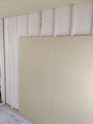 ボード貼りは、壁や天井の軽量鉄骨や木材などの下地に石膏ボードを貼り付ける作業で建物の内装を整える基礎的な工程になり、石膏ボードを貼った後にパテをしてクロスを貼ったり塗装をしたりします。