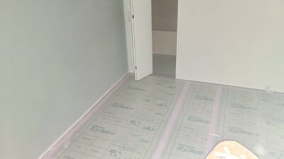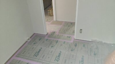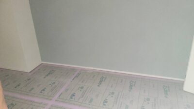 先日、床貼りが終わった現場では巾木の施工が進んでいます。