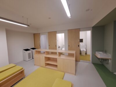 先日、専有部の施工が完了したリフォーム現場で共用室の施工が完了しました。